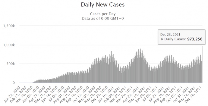 За сутки 22 декабря в мире обнаружили 973 256 новых случаев коронавируса – это самый большой ежедневный прирост за время пандемии.