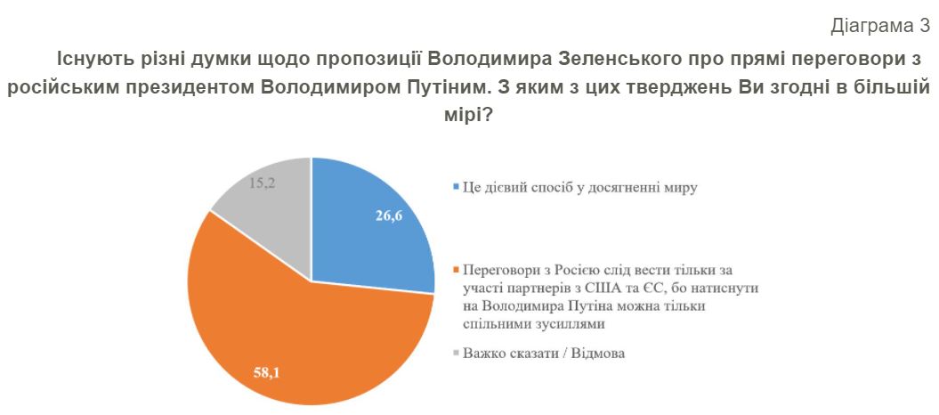 Дословно: "Большинство респондентов – 58,1% – считают, что переговоры с Путиным следует вести только с участием западных партнеров".