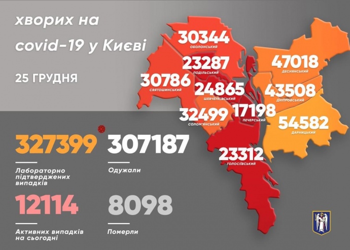 Всего с начала пандемии в Киеве обнаружили 327 399 случаев коронавируса, умерли 8098 больных, выздоровели 307 187 человек.