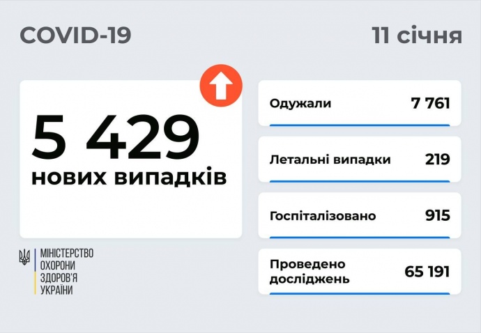 За сутки 10 января в Украине зафиксировали 5 429 случаев заболевания Covid-19 и 219 смертей от его осложнений, в больницы положили 915 больных.
