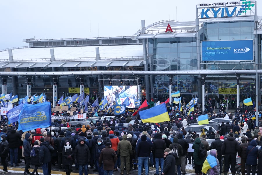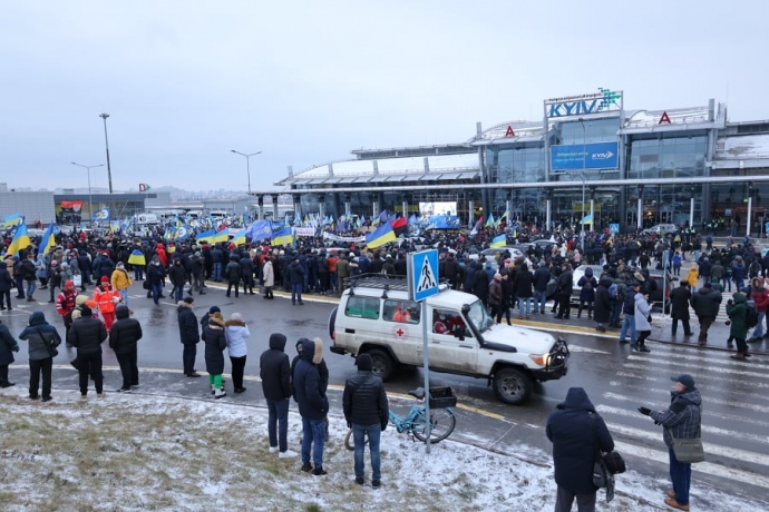 Полторы тысячи поклонников Порошенко собрались под аэропортом в Киеве