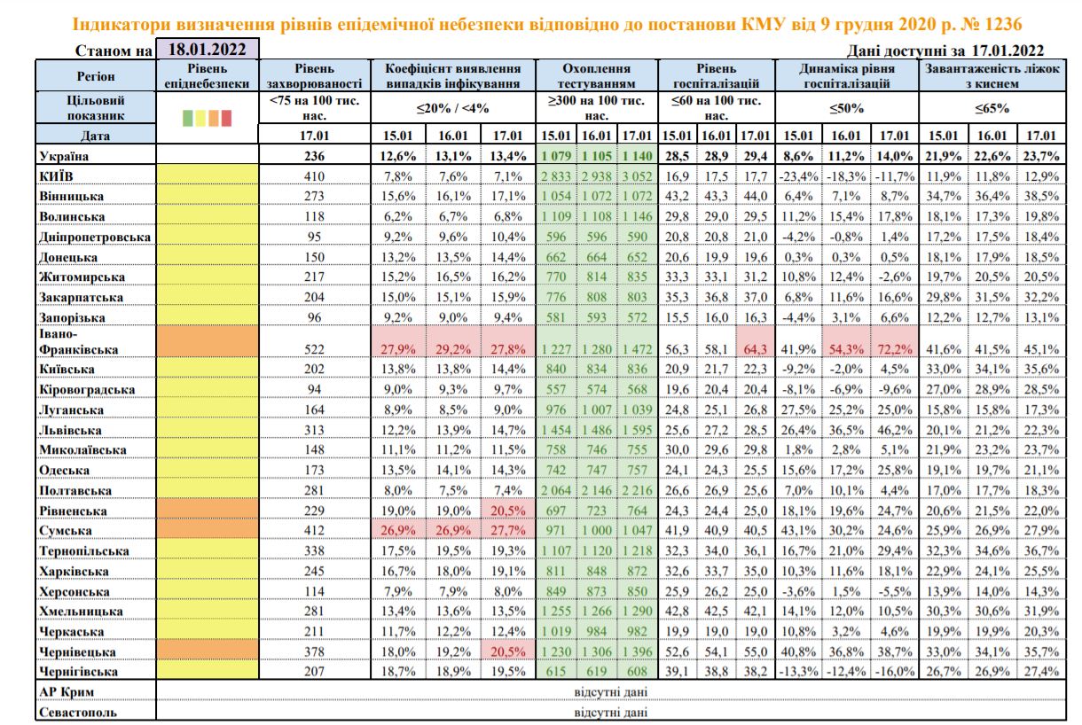 - В Украине по состоянию на 16 января в оранжевой зоне эпидемической опасности были две области – Ивано-Франковская и Сумская.