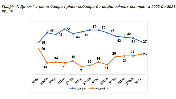 Уровень доверия к данным социологических опросов за последние годы немного снизился (с 41% в 2020 году до 37% в 2021 году)".