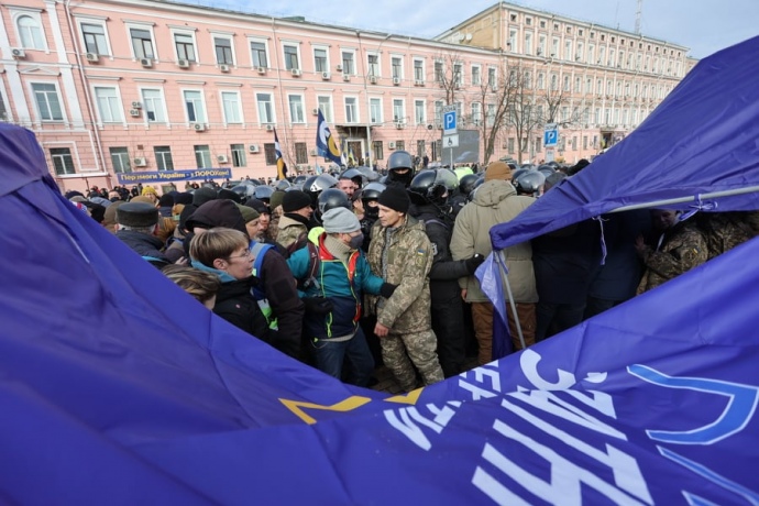 После этого между сторонниками Порошенко и стражами порядка началась толкотня.