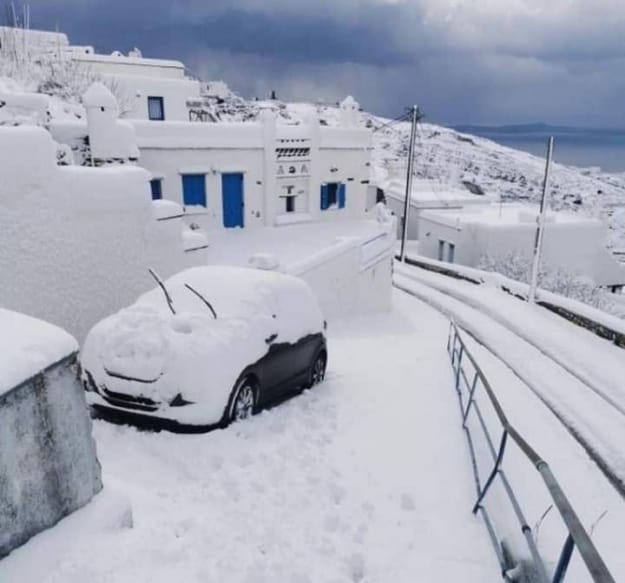 На острове Наксос многие горные деревни были отрезаны от остального острова, несмотря на постоянные усилия снегоочистительных машин удерживать дороги открытыми. Из-за непогоды на островах на два дня закрыли школы.