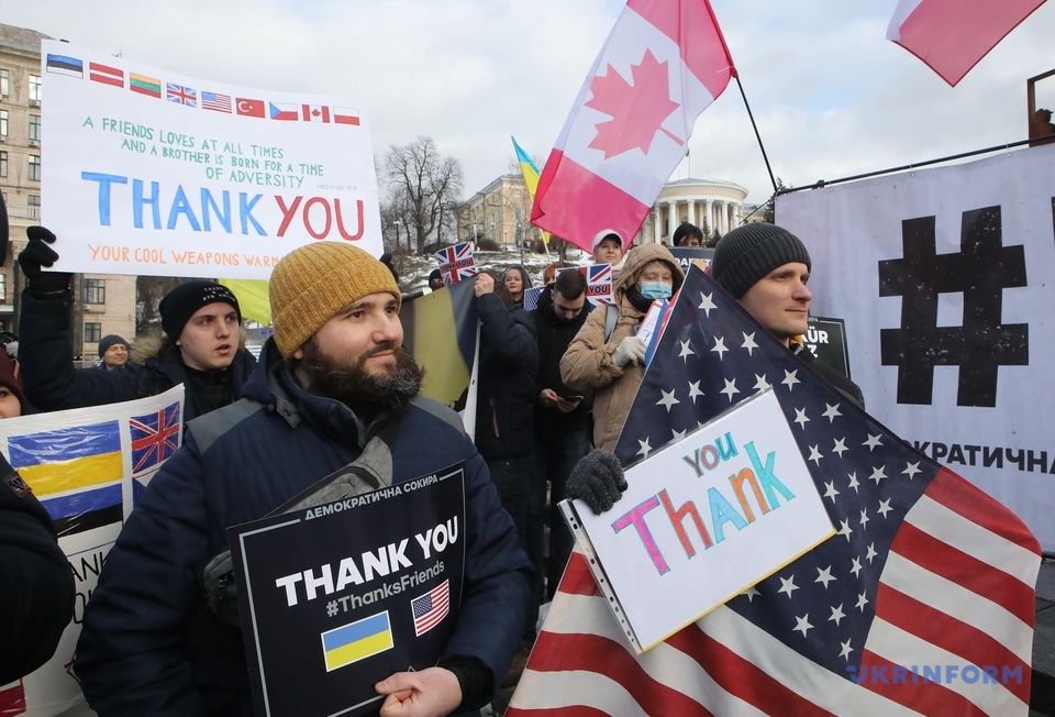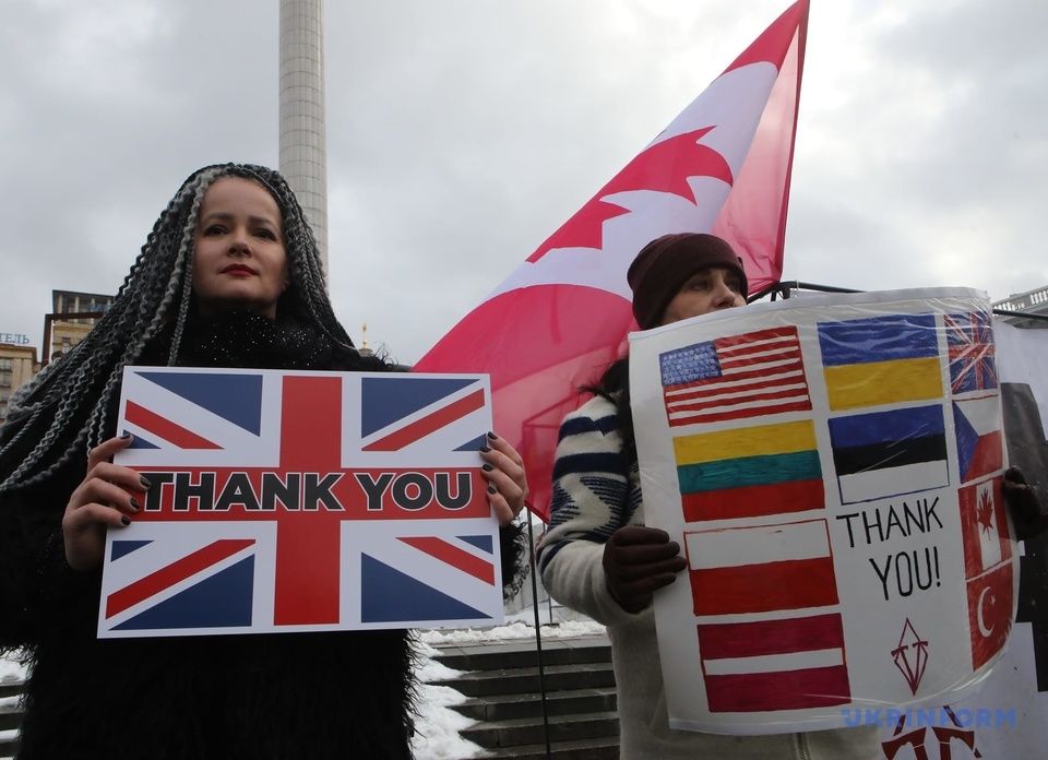 В Киеве на Майдане Незалежности прошла акция благодарности западным партнерам, предоставившим Украине вооружение и другую помощь на фоне роста российской агрессии.