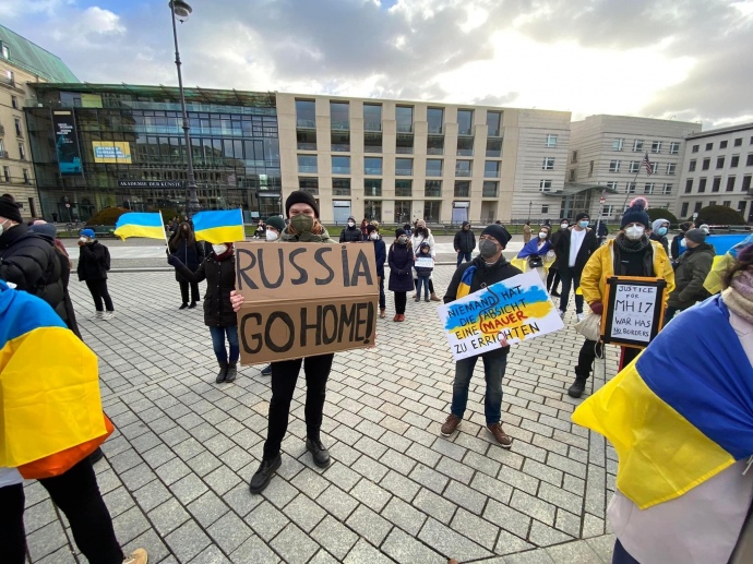 В Берлине в воскресенье, 30 января, украинцы и друзья Украины вышли на акцию протеста против войны и призвали правительство Германии к сдерживанию агрессии России.