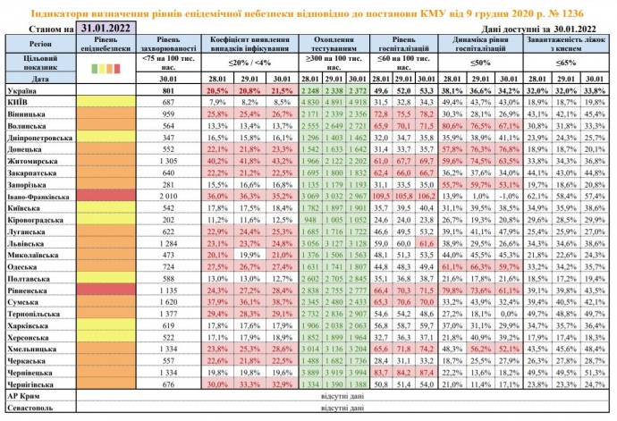 Детали: По состоянию на утро 31 января Ивано-Франковская и Ровенская области остаются красными.