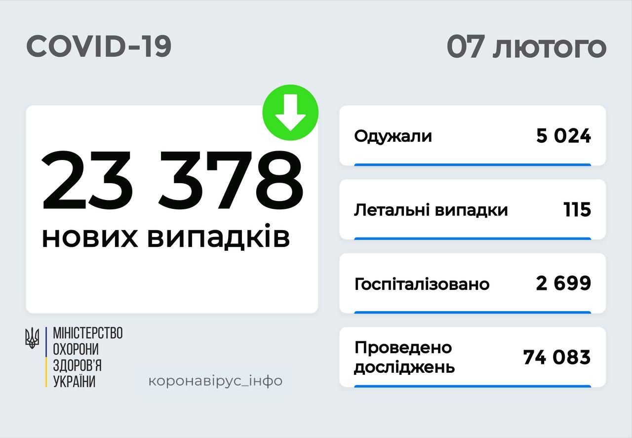 За сутки 6 февраля в Украине зафиксировали 23 378 случаев заболевания Covid и 115 смертей от коронавирусной болезни.