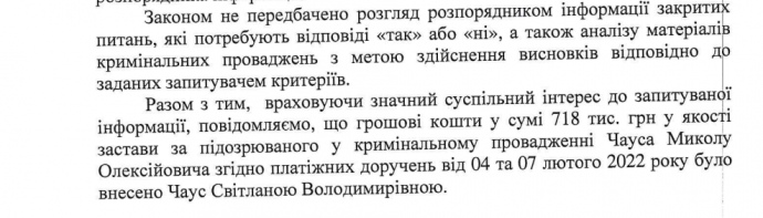 Детали: Указывается, что Чаус внес 717 900 гривен 7 февраля.