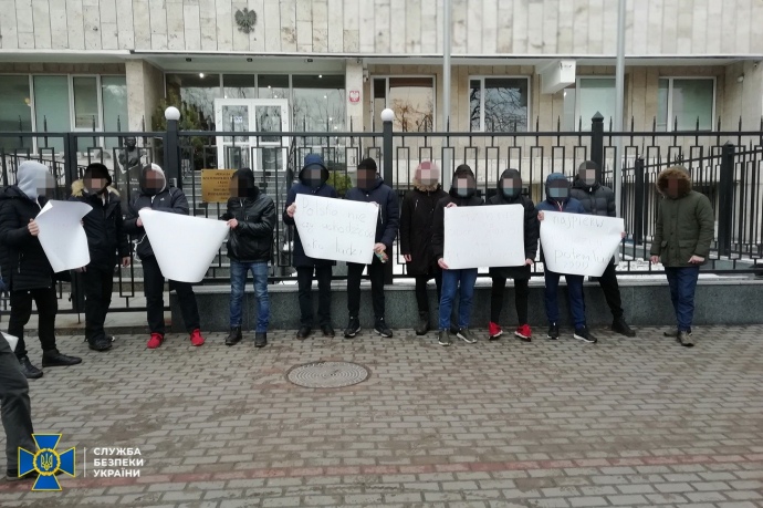 СБУ обнаружила, что злоумышленник причастен и к организации несанкционированных митингов возле зарубежных дипломатических представительств, участники которых использовали "деструктивную агитацию".