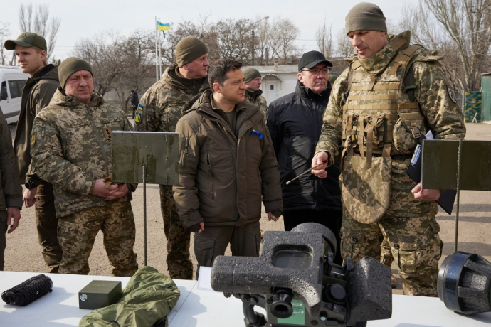 Детали: Сообщается, что глава государства осмотрел образцы новейшего вооружения и военной техники, переданные подразделениям Вооруженных Сил Украины, в том числе переносные противотанковые ракетные комплексы FGM-148 Javelin и NLAW, а также гранатомет М141.