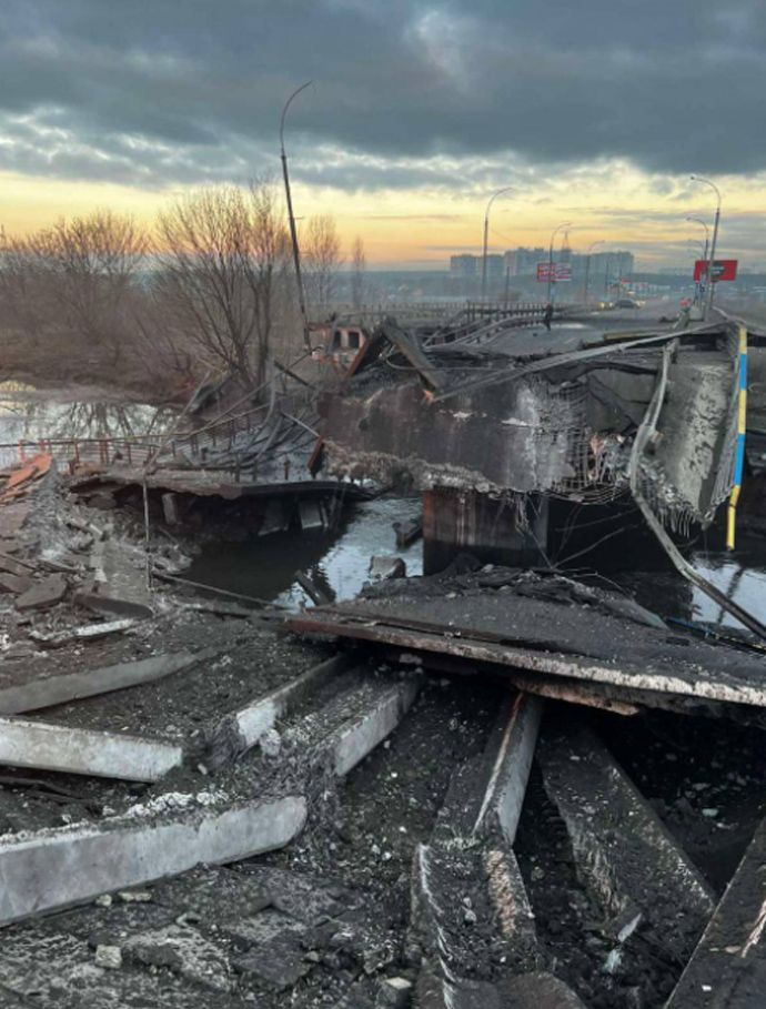 Детали: В частности, взорвали мост на Новоирпенской трассе, мост в Гостомеле по Варшавской трассе, и в Демидове мост через Ирпень.