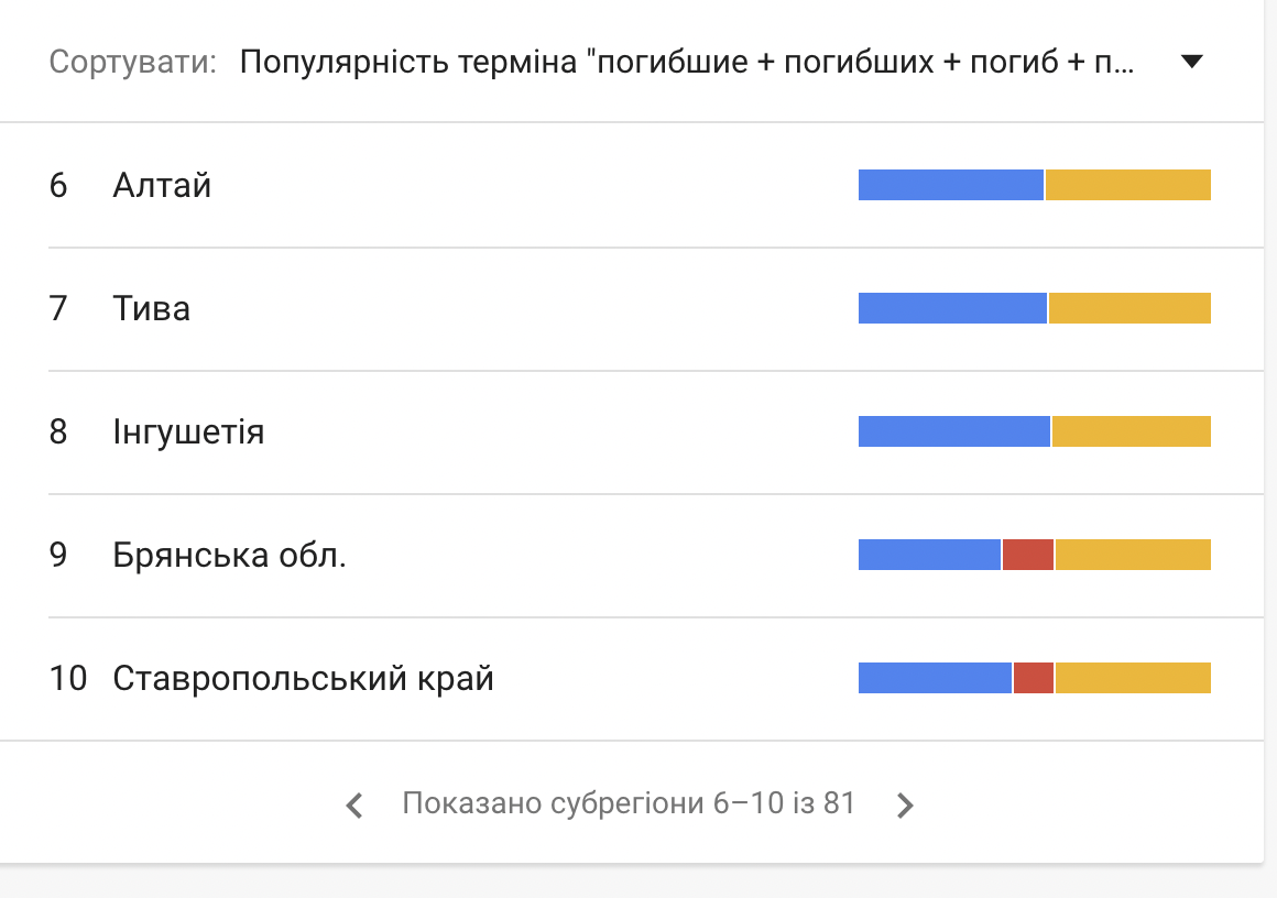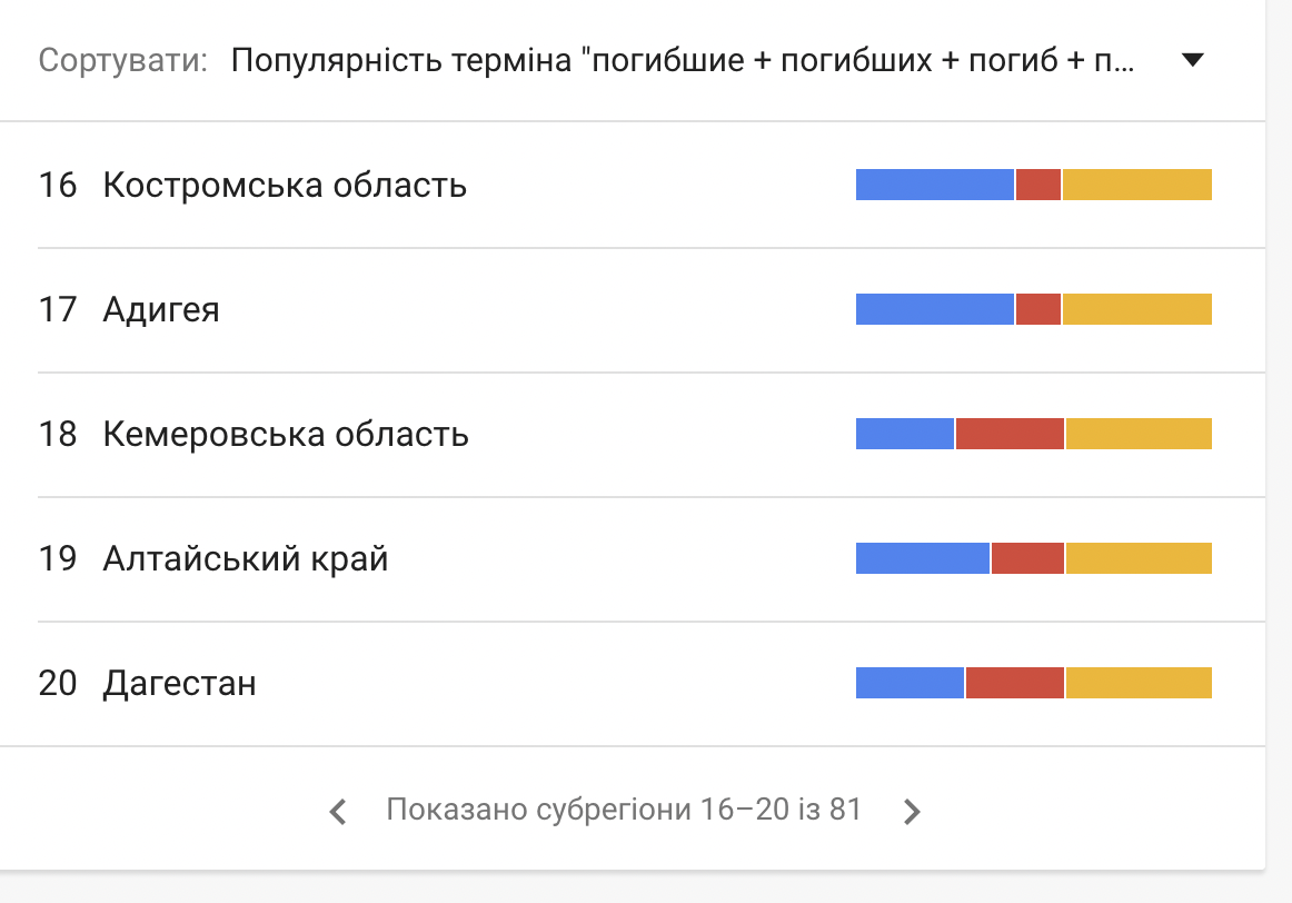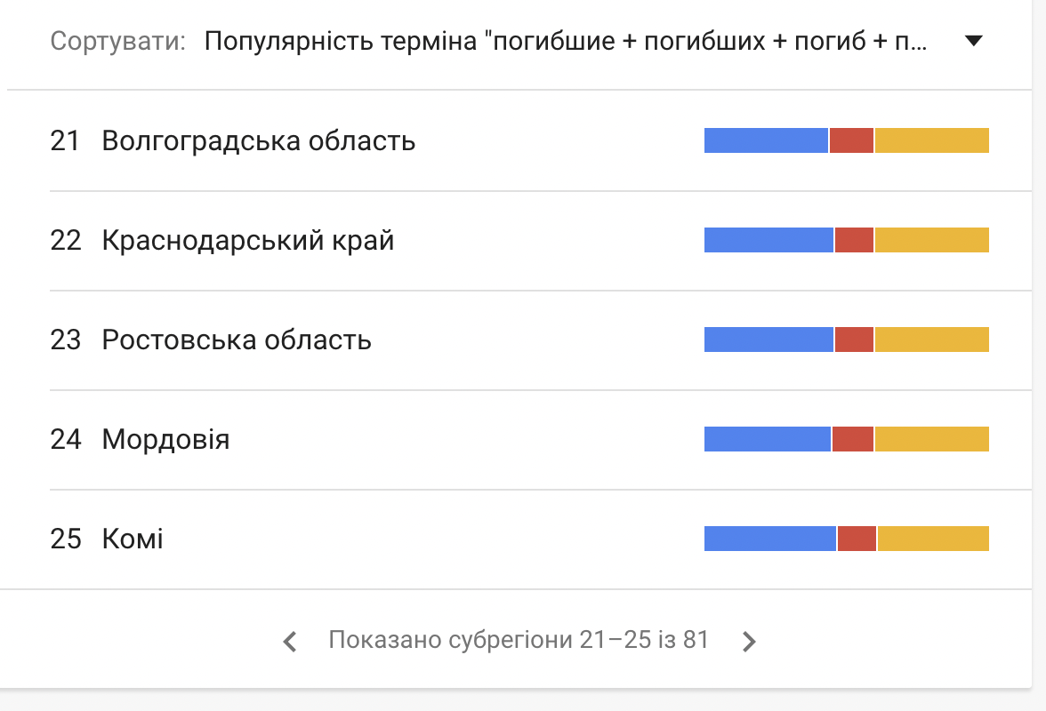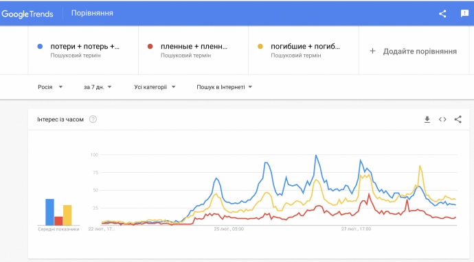 Детали: С 24 февраля в России значительно выросли запросы в google "погибшие", "потери" и "пленные".