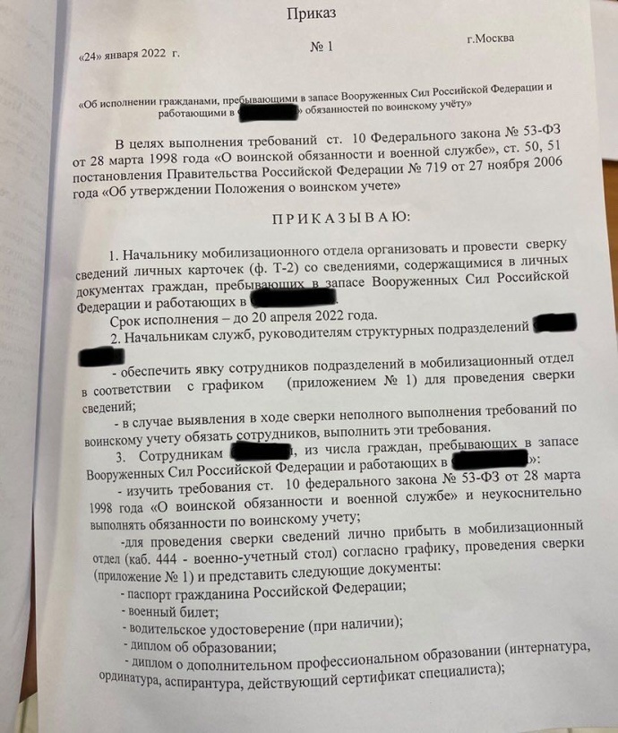Детали: Согласно приказу, до 20 апреля начальники мобилизационных отделов должны сверить учетные карточки военнослужащих запаса, а те должны явиться в мобилизационные отделы.