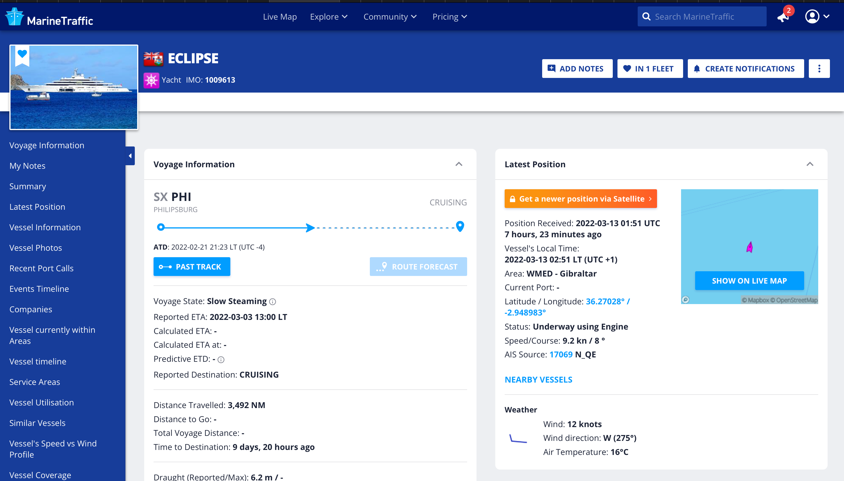 Сейчас эта яхта проплывает Испанию.