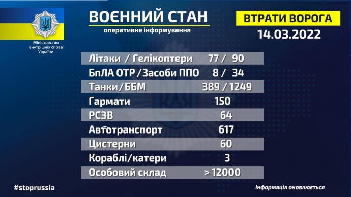 Детали: Общие боевые потери противника с 24.02 до 14.03