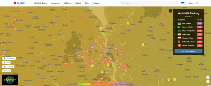 Детали: По загрязненности воздуха Киев оказался на первом месте в мире, обойдя Лахор (Пакистан) и Дакку (Бангладеш).