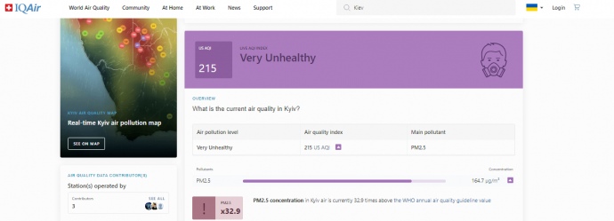 Киев вышел на первое место в мире по загрязненности воздуха — в 33 раза выше нормы