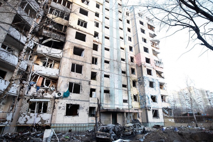 Из-за попадания вражеского снаряда получили повреждения дома в Святошинском районе Киева, пострадали шесть человек, эвакуированы 200 человек.