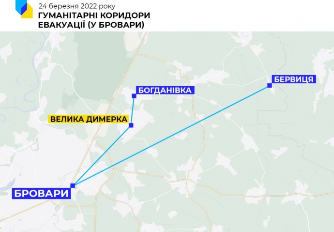- Из села Бервица в Бровары. Место сбора – из села Бервица люди должны самостоятельно перейти к мосту между селами Мокрец и Заворичи, где переходят реку Трубеж в направлении улицы Совхозная. Автобусы для эвакуации будут отправлены из города Бровары.