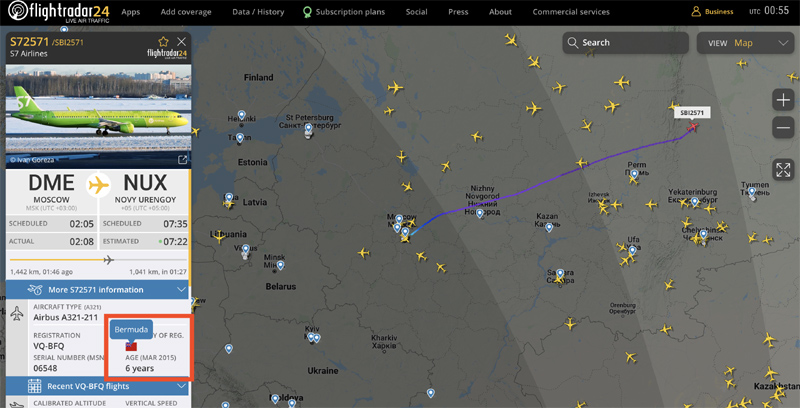 Детали: Бортовой номер самолетов, зарегистрированных в России, начинается буквами RA. Вместе с тем почти все самолеты (а это несколько сотен судов) имеют бортовые номерные знаки, которые начинаются на VP-B или VQ-B.