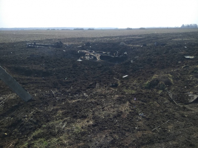 Дословно: "Еще одна колонна бронетехники оккупантов уничтожена где-то в полях Черниговской области".