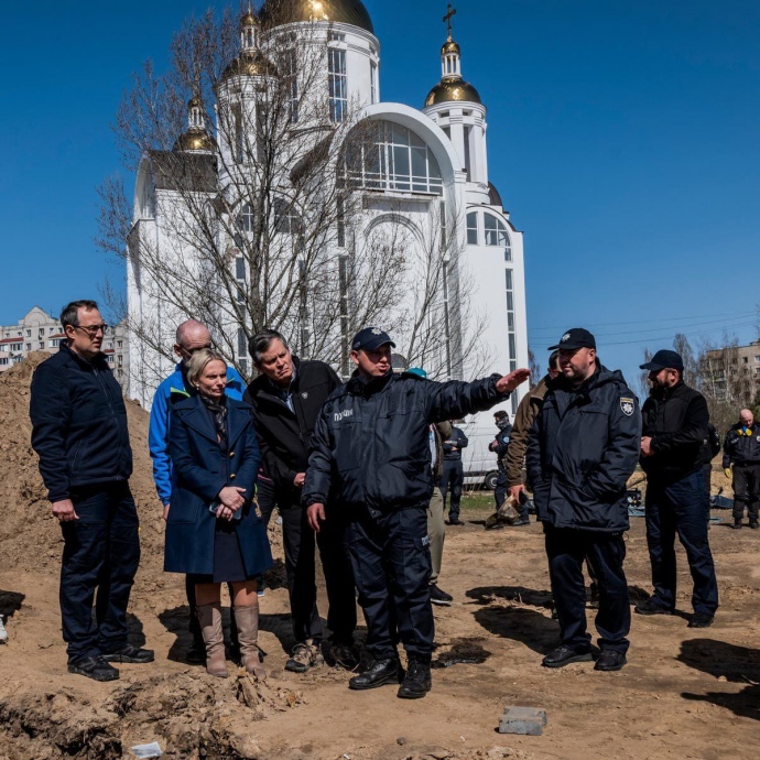 Сенаторы также побывали в Буче и наблюдали за эксгумацией братской могилы. Дэйнс назвал увиденное "неоспоримым доказательством военных преступлений".