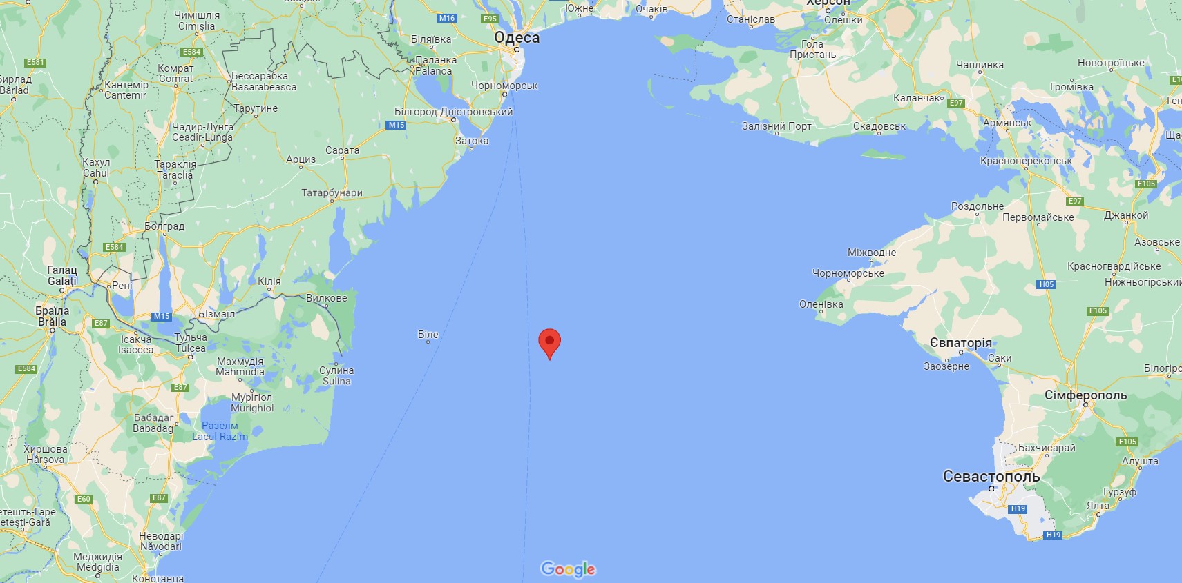 В этот момент корабль находился восточнее острова Змеиный – 80 морских миль от Одессы и 50 морских миль от украинского побережья. Точные координаты в момент удара украинских ракет по российскому крейсеру 45°10’43.39″N, 30°55’30.54″E