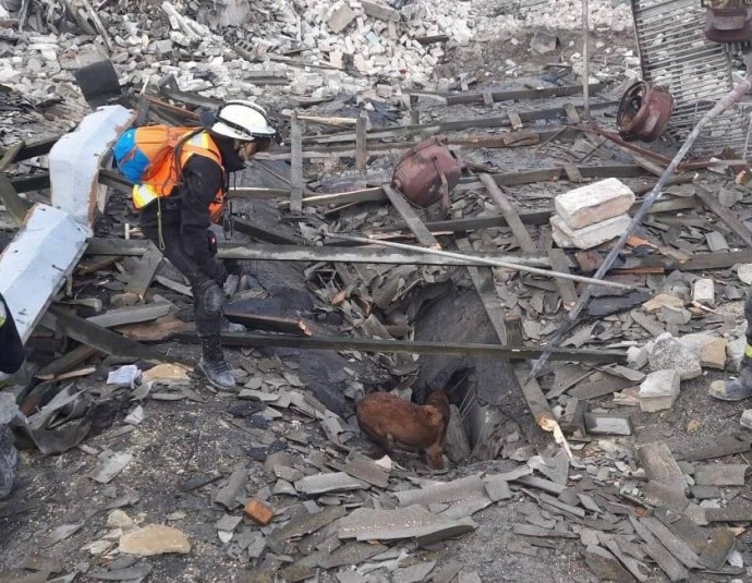 Уничтожено 8 построек. Под завалами три легковых авто и один грузовик. Взрывной волной выбило стекла и заблокировало двери в жилом доме рядом.