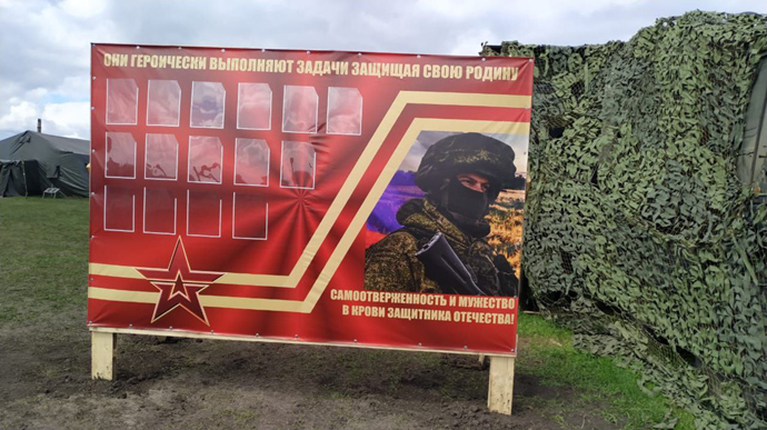В полевом лагере российских войск на границе с Украиной установили два стенда с рамками для фотографий для "хороших" солдат РФ, которые рвутся в бой, и "плохих", которые отказываются ехать на войну с Украиной.