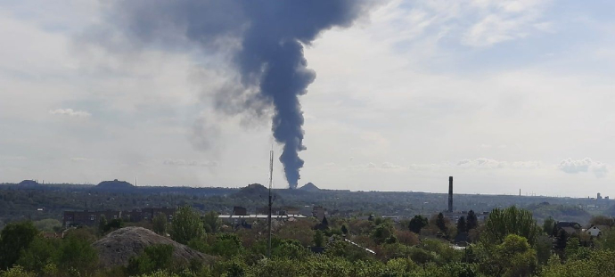 Во временно оккупированной Макеевке Донецкой области утром начался сильный пожар, очевидцы сообщают, что в городе горит нефтебаза.