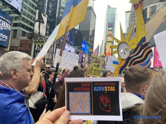В Нью-Йорке сотни людей требовали спасти защитников Мариуполя