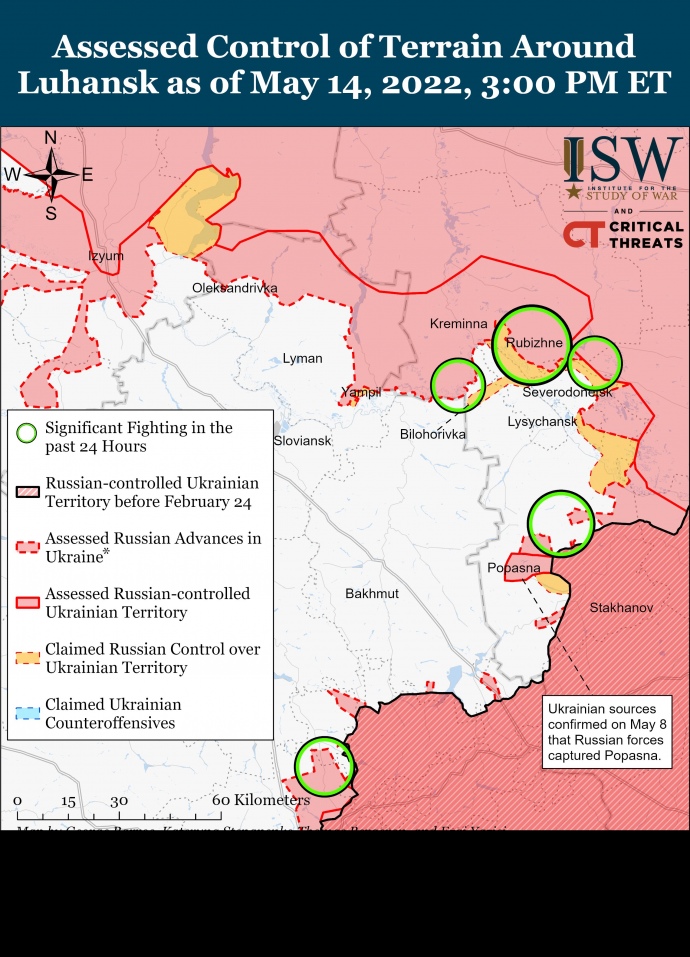 Уничтожение мотострелковой части может серьезно помешать усилиям России изолировать Северодонецк и Лисичанск с севера. В течение последних 24 часов российские войска не предпринимали никаких попыток продвижения в этом районе.
