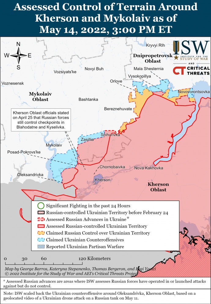Различные сообщения о возможных датах проведения референдума в Херсоне (и отрицание того, что будет какая-либо аннексия) свидетельствуют о "значительном замешательстве" в российском руководстве на разных уровнях относительно перспектив России обезопасить эту территорию и, возможно, иметь продвижение вперед, считают в ISW .