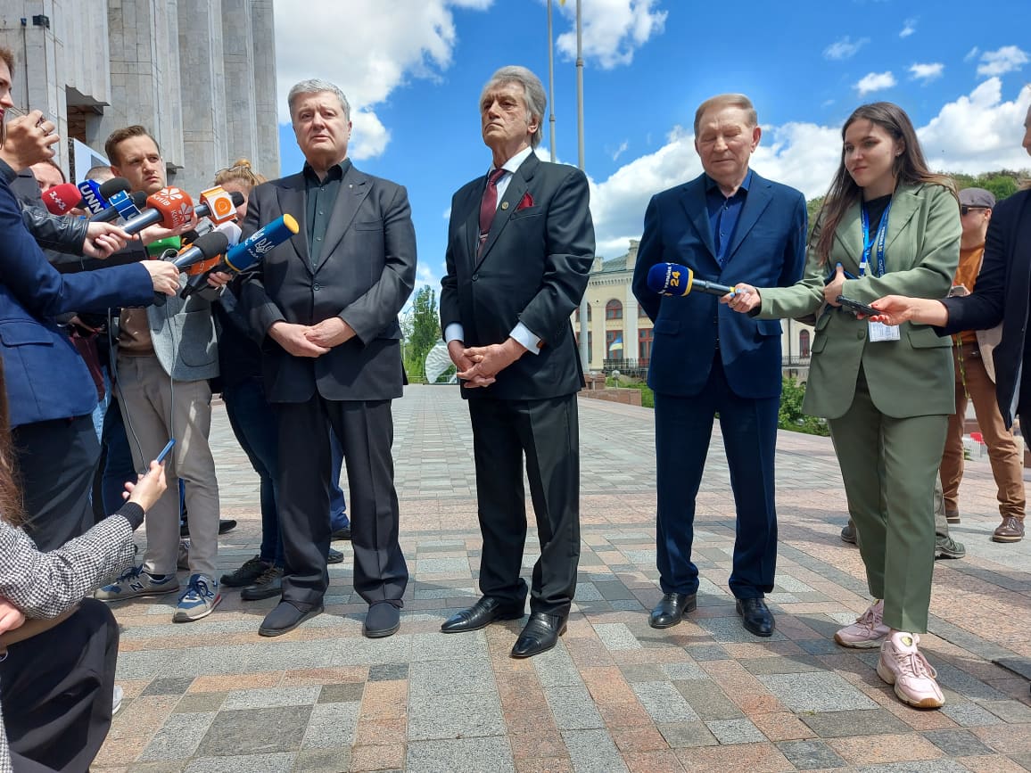 Также попрощаться с первым президентом Украины прибыли второй, третий и пятый президенты: Леонид Кучма, Виктор Ющенко, Петр Порошенко.