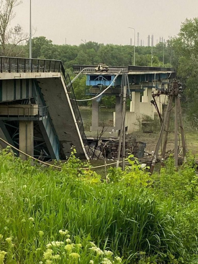Российские захватчики уничтожили мост между городами Северодонецк и Лисичанск.