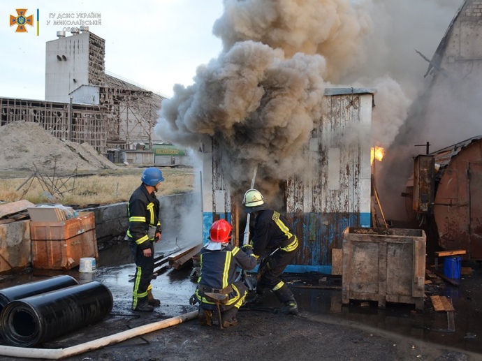 В Николаеве до сих пор тушат пожар, который возник после субботнего обстрела РФ