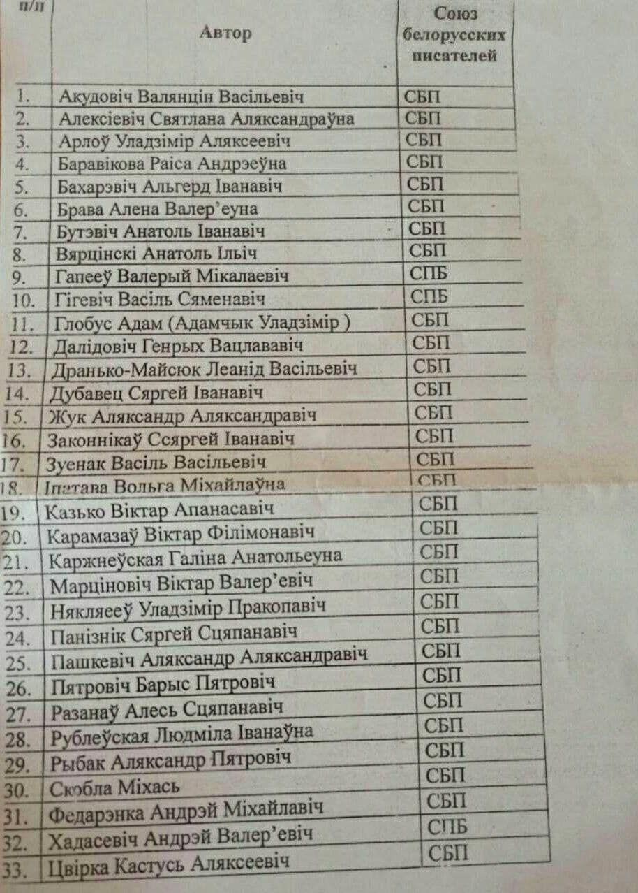 Детали: Всего в списке значатся 33 фамилии авторов, неугодных властям.