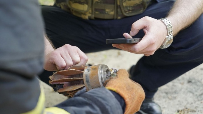 "Мы обнаружили обманную цель из ракеты "Искандер", маркировка ее 9П899, то есть она оставляет после себя ложный тепловой след, на который реагирует ПВО. Тогда ПВО саму ракету не сбивает, а сбивает именно эти цели", - рассказал старший сапер группы пиротехнических работ Антон Педченко.