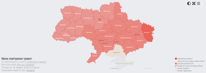 Во всех регионах, кроме оккупированных Россией Херсонщины и Крыма, прозвучали воздушные тревоги.