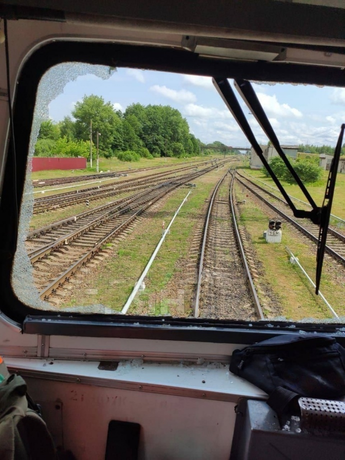 Повреждены стёкла кабины машиниста, железнодорожные пути не повреждены, пострадавших нет".