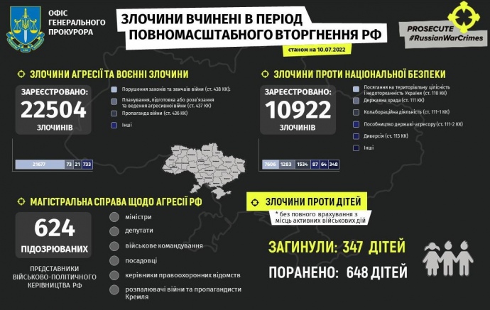 Детали: По официально подтвержденным данным, с 24 февраля до утра 10 июля по меньшей мере 995 детей пострадали в Украине в результате полномасштабной вооруженной агрессии Российской Федерации: детей-жертв осталось 347, но возросло количество раненых – 648 детей.