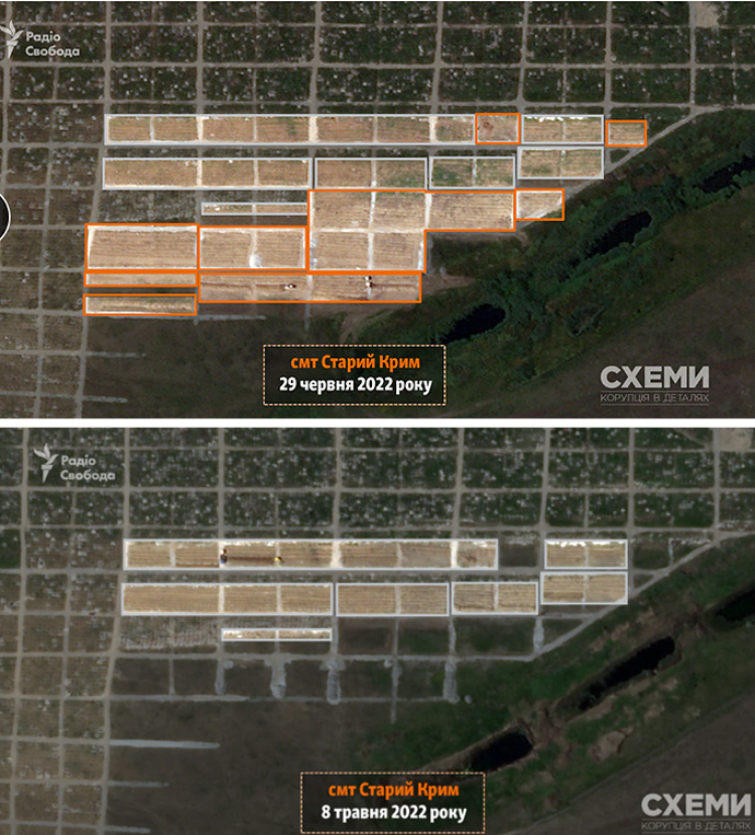 - В конце апреля спутники обнаружили появление массового захоронения на кладбище Старого Крыма в северо-западном пригороде Мариуполя.