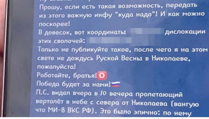 Что предшествовало: 30 июля СБУ задержала жителя Николаева, который передавал информацию о позициях ВСУ российским спецслужбам, а те планировали использовать эти данные для нанесения ракетных ударов по Николаевщине.