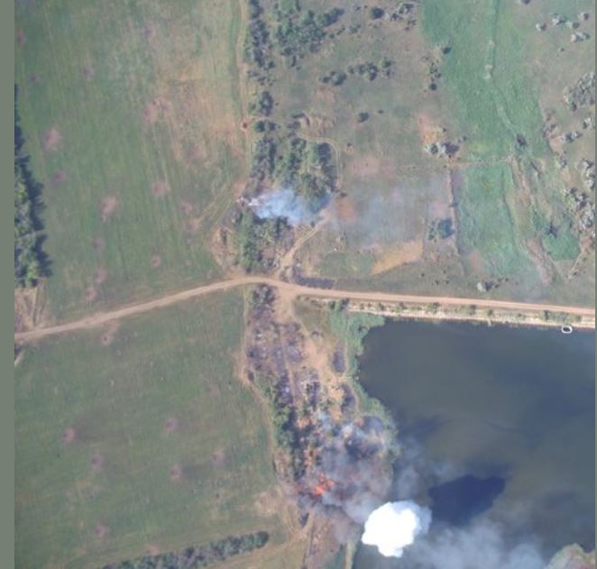 Дословно: "Наша прекрасная украинская земля в Донецкой области, с которой успешно выжгли две САУ 2С3 "Акация".