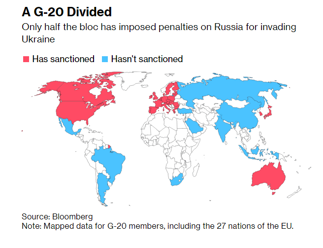 Только половина блока G20 ввела санкции против России за вторжение в Украину.