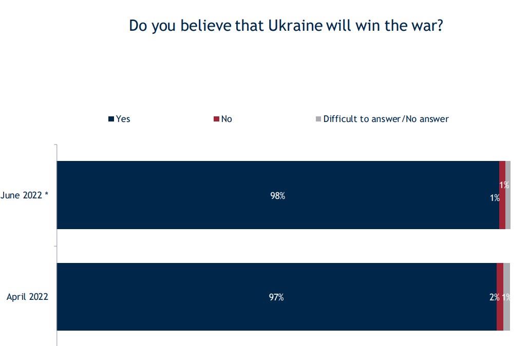 В предыдущем опросе, проведенном в апреле, в победу Украины в войне верили 97%.