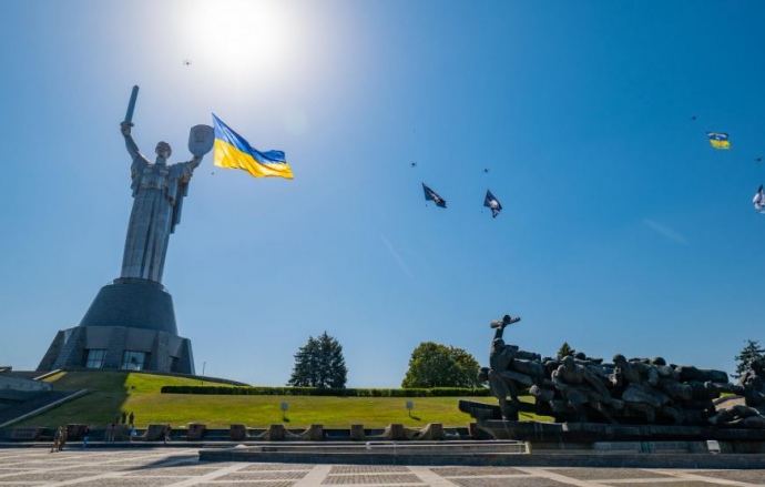 Ко Дню независимости армия дронов подняла над Киевом почетные флаги легендарных бригад Вооруженных сил Украины.