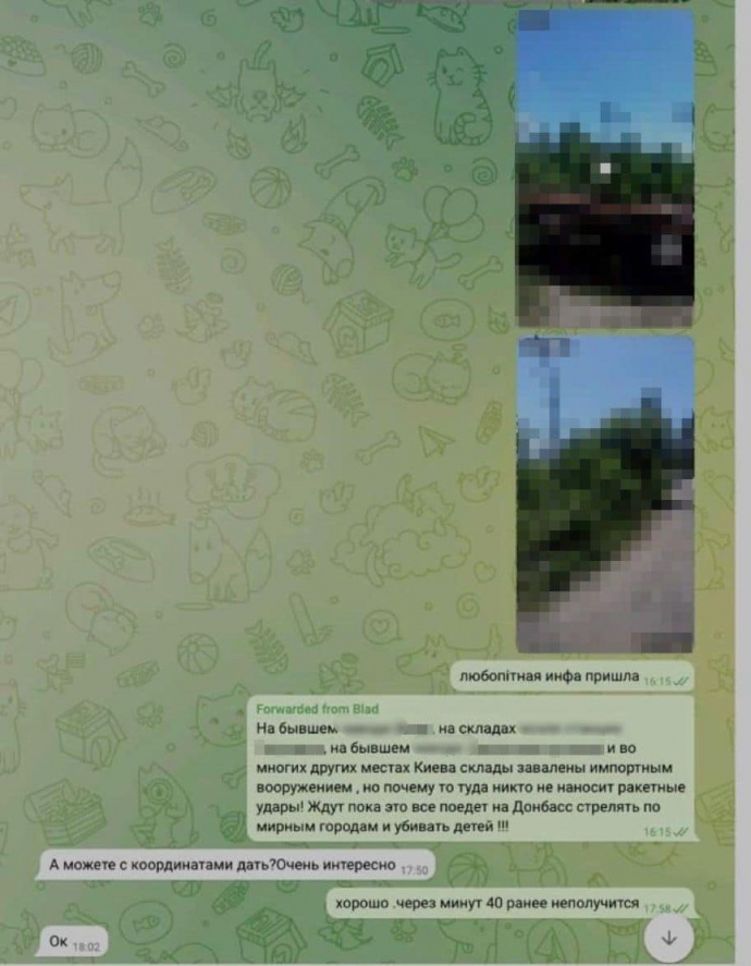 К сообщениям в мессенджере корректировщик добавлял GPS-координаты военных объектов и фото мест дислокаций.